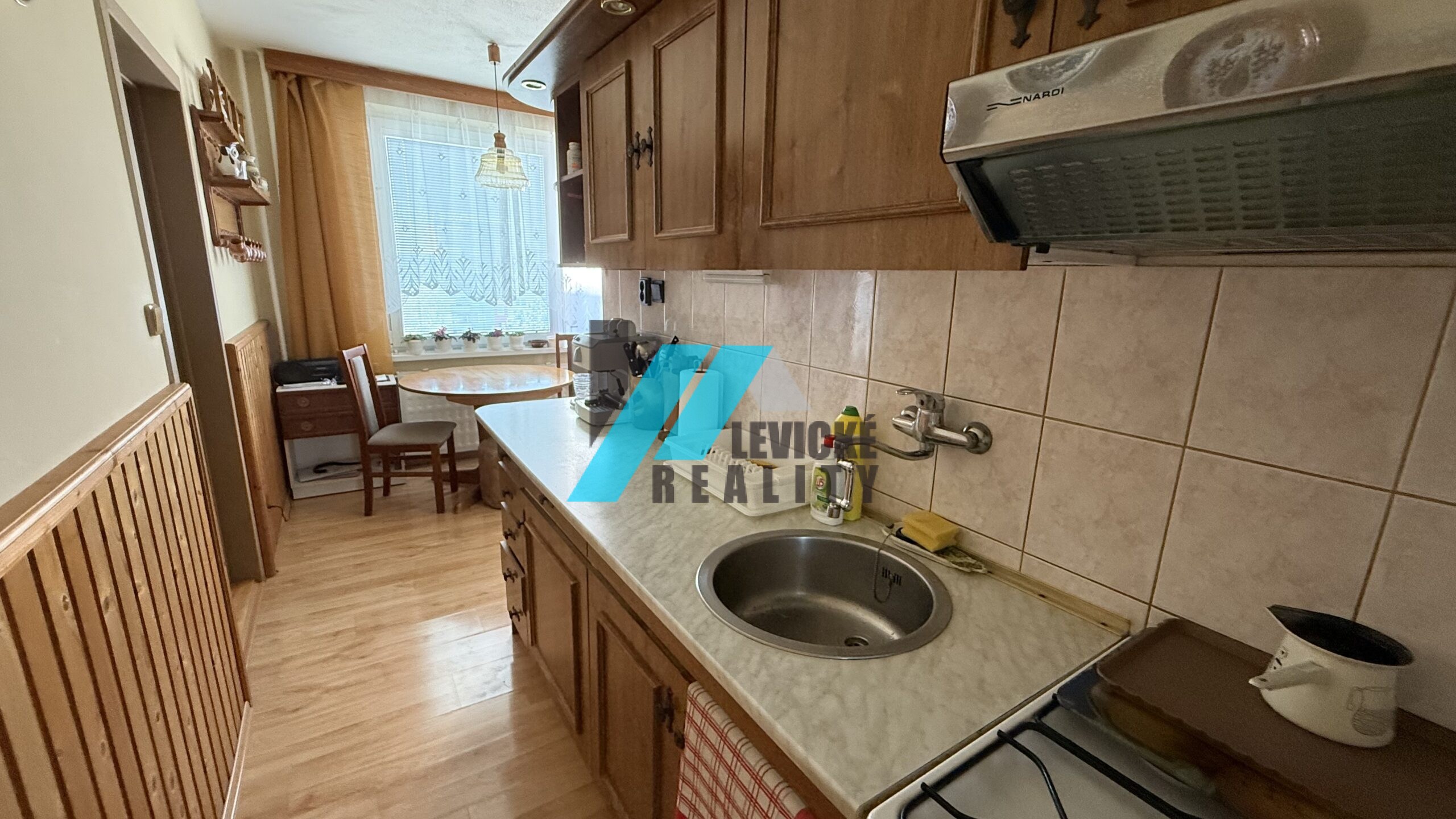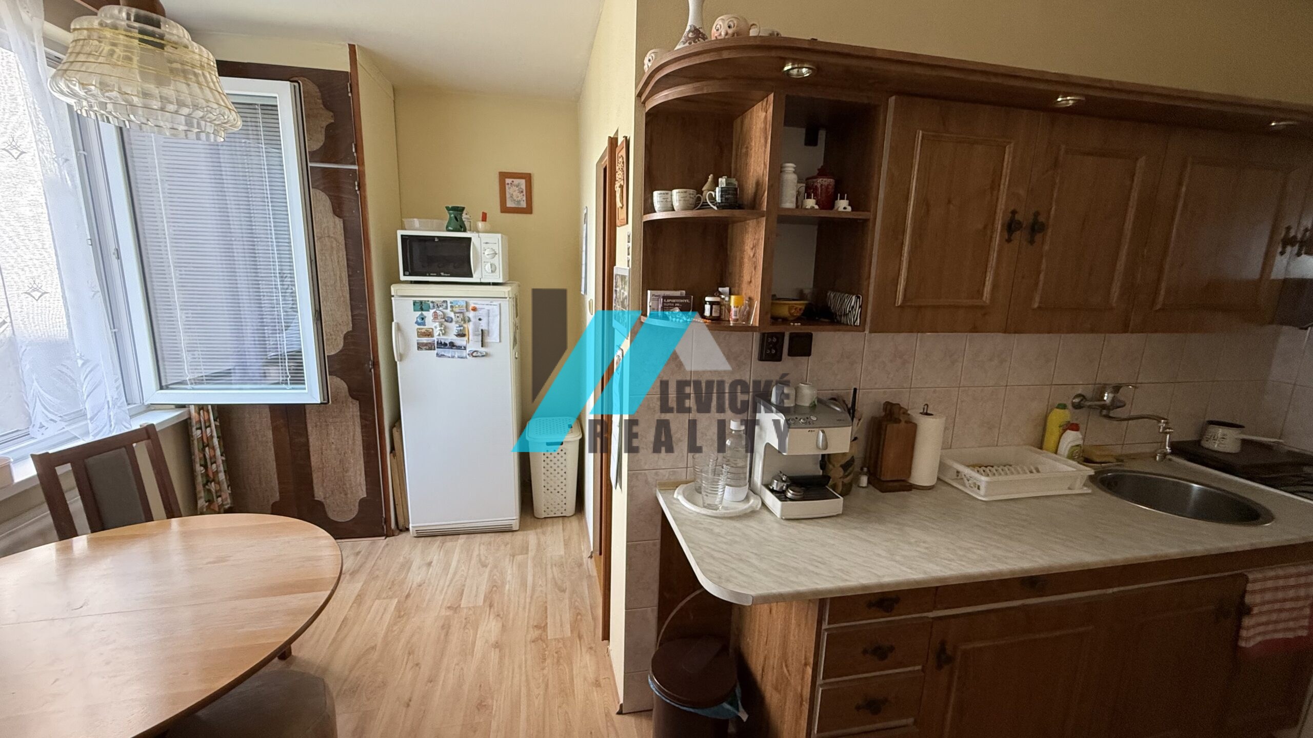 Ak hľadáte naozaj pekné a tiché miesto na bývanie a zároveň s dosahom všetkých vymožeností mesta – Ste na správnej adrese. Realitná kancelária Levické-reality Vám ponúka na predaj presvetlený 3-izbový byt so skvelou orientáciou v zateplenej bytovke, ktorá prešla rekonštrukciou. Byt sa nachádza na piatom poschodí s výťahom. Ideálne riešený byt o celkovej rozlohe 81,79 m2 disponuje vstupnou chodbou, z ktorej vedú samostatné dvere na toaletu, do kumbálu, do spálne, detskej izby, obývacej miestnosti s balkónom a kuchyne. Z kuchyne sa plynule dostaneme do kúpeľne. Byt prešiel rekonštrukciou, počas ktorej boli vymenené plastové okná, rozvody elektriny a vody v bytovom jadre, stierky a maľovky a takisto položené laminátové podlahy v kombinácií s dlažbou. V byte boli tiež vymenené exteriérové dvere. V kuchyni sa nachádza novšia kuchynská linka so spotrebičmi. Množstvo úložného priestoru ponúka murovaný kumbál na chodbe. Bonusom tejto nehnuteľnosti je jeho poloha. Predávaný byt je umiestnený v tichej lokalite s kompletnou občianskou vybavenosťou v pešej dostupnosti – škola, škôlka, potraviny, detské ihrisko, zastávka MHD a iné. Nehnuteľnosť je možné zakúpiť aj formou HÚ, ktorý Vám radi a bezplatne sprostredkujeme v rámci našich služieb.